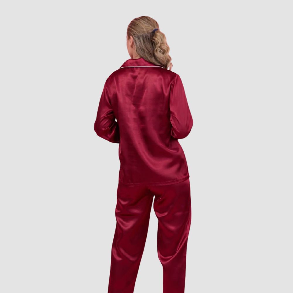 Maroon Silk Night Suit for Women – Long Sleeves & Collar Design